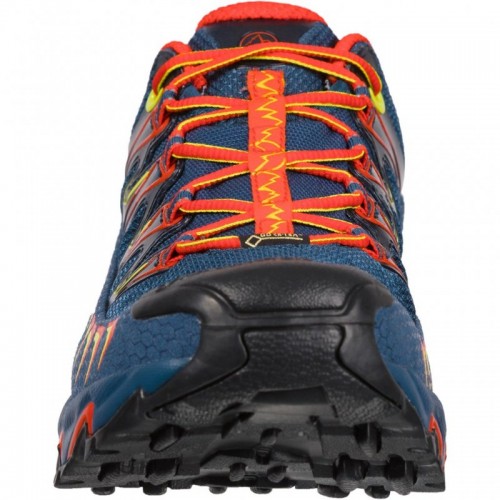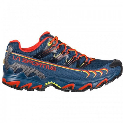 Pantofii de alergare Ultra Raptor GTX pentru barbati, de la La Sportiva, au fost creati pentru trasee off-road, de rezistența, competiții ultra-maraton sau pentru sesiuni de antrenament indelungate. Suprafetele extrem de respirabile sunt montate pe o talpa intermediara moale, din spuma EVA (mai lata la varf și mai ingusta la calcaie) pentru o absorbție optima a șocurilor.Sistemul integrat de sireturi are o banda pe interior cu intarituri pe plasa externa. Acest lucru permite o mai mare versatilitate a tensiunii la nivelul intregului calapod, sporind astfel nivelul de confort. Ultra Raptor este pantoful ideal pentru utilizarea indelungata pe traseele de anduranța și toate tipurile de trasee off road. captuseala este confectionata dintr-o plasa cu insertie din piele PU „Easy-in”, pentru usurinta fixarii si stabilitatii calcaiului talpa intermediara este conceputa din spuma Eva pentru amortizarea socurilor in alergare sistem Frixion XF pentru o mai buna aderenta la impact greutate: 820 grame/pereche, marimea 42