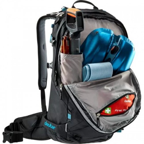 Primul lucru pe care il observi la noul Freerider este designul foarte simplu si nou. Chingile cu tridenti pentru fixarea rucsacului pot fi depozitate in compartimente speciale. Sistemul de sustinere nou si imbunatatit Deuter Alpine asigura o calatorie placuta si confortabila chiar si cand transporti incarcaturi grele. In plus, acest rucsac de schi si snowboard este dotat cu compartimente interioare pentru depozitarea in siguranta a echipamentului tehnic specific: ochelari, lopata etc Alpine System: sistemul combina o asezare ferma, sigura, cu un nivel ridicat de confort si ventilatie eficienta centura de sold captusita cu material moale centura de stern ajustabila compartiment interior pentru obiectele de valoare compariment interior elastic eticheta SOS salteluta pentru sezut sistem de transportare a schiurilor/placii de snowboard compartiment pentru lopata compatibil cu sistemul de hidratare de 3.0 litri suport pentru betele de trekking si pioleti bucle pentru atasarea castii chingi ajustabile aripioarele de la centura de sold ofera o ajustare simpla si precisa chingi de compresie adaptat pentru anatomia feminina dimensiuni: 54 x 28 x 20 cm volum: 24 litri grutate: 1190 grame