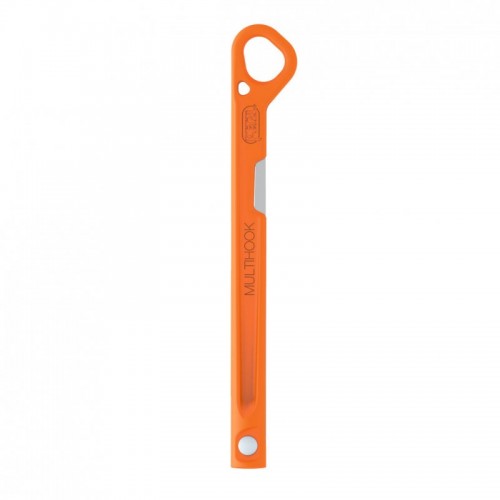 Unealta destinata crearii de ancore, pliabila si multifunctionala. Proiectata pentru catararea la gheata, unealta Multihook permite directionarea unei corzi pentru a crea o ancora de tip V in gheata. Este echipata si cu o lama zimtata pentru a-ti permite sa tai corzi si cordeline. Poate fi folosita si pentru curatarea tubului unui surub de gheata. Unealta Multihook poate fi pliata sau agatata, pentru facilitarea transportului. unealta eficienta, permite crearea unei ancore in gheata, cu o adancime de pana la 25 cm. varful poate fi reascutit multifunctionala: lama zimtata poate taia cu usurinta corzi si cordeline si poate fi folosita si pentru curatarea tubului suruburilor de gheata compacta: poate fi pliata, pentru depozitare in buzunar sau poate fi atasata de o carabiniera material: otel inoxidabil, nailon greutate: 40 g dimensiune: 28 cm
