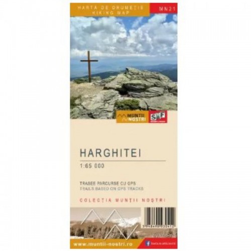 Harta turistica detaliata si complexa a Muntilor Harghitei. Harta s-a editat folosind cele mai actuale tehnici de cartografiere şi s-a tiparit pe hartie rezistenta la umiditate. Este uşor de citit şi simplu de utilizat datorita stilurilor de reprezentare cartografice şi datorita structurarii practice ale informaţiilor. Totul este la indemana, exact acolo unde este necesar, fiind utila atat pasionaţilor de drumeţii cat şi profesioniştilor.Zonele Harghita Madaraş, Harghita-Bai, Muntele Ciomatu apar la o scară de 1 : 25 000, iar zona Cheile Vârghişului apare la o scară mai detaliată: 1 : 10 000. Toate traseele au fost parcurse pe teren cu GPS-ul. Acestea sunt descrise in detaliu in limbile romana şi engleza, unele trasee avand ataşate imagini reprezentative. Fiecare traseu are o caseta tehnica conţinand: marcajul turistic verificat pe teren, ruta traseului, profilul cu punctele de reper mai importante, date referitoare la dificultate, lungime, urcuş total, coborare totala, timp de parcurgere dus-intors, practicabilitate in funcţie de anotimp etc. Harta conţine şi un caroiaj UTM, un sistem de coordonate metric, fiind util in masurarea rapida a distanţelor pe harta. Umbrirea şi curbele de nivel scot in evidenţa relieful, uşurand orientarea.
