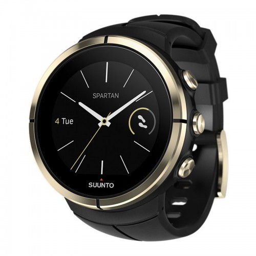 SPARTAN ULTRA GOLD este un ceas multisport cu ecran tactil color,  echipat cu GPS si o serie de alte functii interesante si utile. In acelasi timp, desi are un design elegant, acesta pastreaza toate functiile sportive si nu numai. Proiectat pentru: alergare, ciclism, drumetie, inot. Poate fi folosit si pentru: activitati urbane, calatorii. dimensiuni din fata: 50 x 50 x 17 mm dimensiuni lateral:  1.97  x 1.97 x  0.67 " material Bezel: titan Grad 5 material sticla: safir cristal material curea: silicon rezistent la100m/300ft sub apa Durata deviata: 18 ore cu o rată fixă ​​Full Power 1sec siGPS cu cea mai bună acuratețe; Power Save : panala 26h grade Outdoor color cu3 impingatoare de actiune; GPS / GLONASS deurmărire și navigare traseu (cu cale de navigare in timp real; rute si punctede interes); FusedAlti ™ carecombină GPS-ul cu altitudinea barometrică pentru informații exacte in ceea ce priveste altitudinea altitudinea GPS pentrumăsurarea valorilor de coborâre și urcare în timpul antrenamentului; busola digital Expertiza sportiva: măsurarea ritmului cardiac cu calorii, PeakTraining Effect si timpul de recuperare suport pentru peste 80 de sporturi cu moduride curse și intervale pre-stabilite; mod Triatlon si multisport; configurarea intervalelor de timp pentruantrenamente; alergare: grafice reale cu pasii si ritmul cardiacfolosit; FusedSpeed ​​™ ofera un ritm precis; ciclism: grafice reale cu distanta parcursa, ritmul cardiac, puterea siviteza; inot: intervale automate in piscina; ritm cardiac cu memorie(optional). Perspective ale antrenamentelor: rezumat pentru 30 de zile de antrenament, catsi pentru perioade mai lungi; optiune de salvare al starii dupa fiecareantrenament; rezumate ale progreselor facute cu personalbest in Suunto Movescount; instrumente de planificare saptamanale. Utilizare zilnica si conectivitati: cadrane de ceas personalizabile; 24/7 Monitorizarea activitatii cu pasi sicaloriile; Sincronizare mobil cu http://www.suunto.com/en-US/Support/Movescount-Mobile-App-container-page/Suunto-Movescount-App/ pentruiOS și Android, cu notificări push; compatibile cu Bluetooth Smart, faracompatibilitate cu ANT+™.