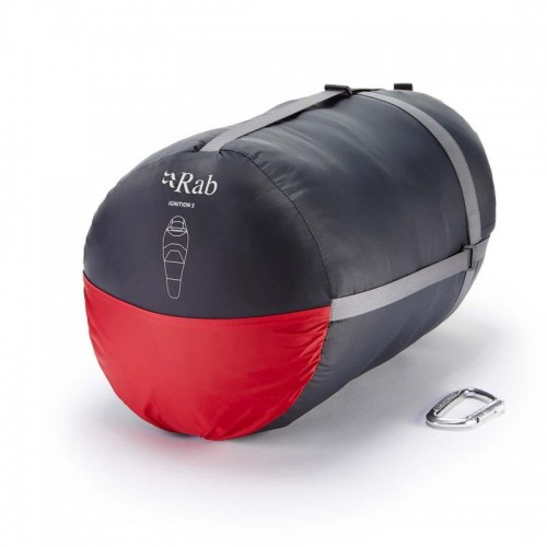 Ignition 5 este un sac de dormit usor, cu umplutura de microfibre sintetice Pyrotec™, exterior din nailon, potrivit pentru 3 anotimpuri. Ofera cel mai mare nivel de caldura din gama Ignition fara a compromite greutatea redusa si volumul scazut. Proiectat in forma de mumie, cu exterior din material dur si rezistent 30D Ripstop, cu caracteristici tehnice utile este alegerea potrivita de-a lungul anului, pentru activitati in aer liber. Test de temperatura conform standardelor europene EN13537: 2012 Comfort: -5°C (23°F)Limit: -11.5°C (11.3°F)Extreme: -31°C (-23.8°F) Temperatura limita declarata de Rab®: -12°C Forma de mumie Spatiu mai mult la picioare pentru confort suplimentar Guler interior si gluga ajustabila Saci de compresie din nailon Umplut cu microfibra de poliester Pyrotec™ Inaltimea maxima a utilizatorului: 185cm (Standard); 200cm (XL) Latimea umerilor/soldurilor/picioarelor: 70/52/41 cm SKU: QSG-65  Dimensiuni (compact): 28 x 50 cm Greutate: 2100 g (Standard) ; 2220 g (XL) Material: Pertex® Quantum