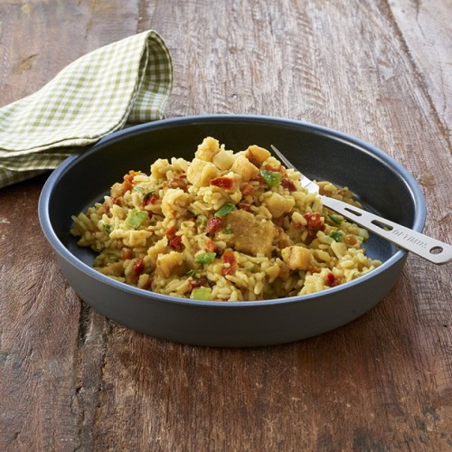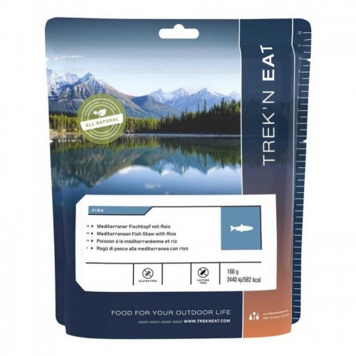 Calitatea, gustul si varietatea sunt prioritatile principale pentru Trek’n Eat. Ca toate produsele Trek’n Eat, acesta nu contine coloranti artificiali, potentiatori de aroma sau conservanti. Informatii nutritionale:            pentru 100g             pentru o portie kJ/kcal                                      1475/378                2360/604.8 Proteine 16g 25.6g Grasimi 5.4g 8.64g - din care acizi grasi saturati 2.2g 3.52g Carbohidrati 58g 92.8g - din care zaharuri 7.3g 11.68g Fibre 5.3g 8.48g Greutate: 160 g (640 g dupa adaugarea apei)