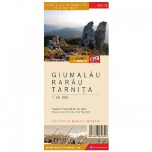 Harta turistica detaliata si complexa a Muntilor Giumalau Rarau Tarnita. Harta s-a editat folosind cele mai actuale tehnici de cartografiere şi s-a tiparit pe hartie rezistenta la umiditate. Este uşor de citit şi simplu de utilizat datorita stilurilor de reprezentare cartografice şi datorita structurarii practice ale informaţiilor. Totul este la indemana, exact acolo unde este necesar, fiind utila atat pasionaţilor de drumeţii cat şi profesioniştilor. Zona Rarau apare la o scara mai detaliata: 1 : 25 000. Toate traseele au fost parcurse pe teren cu GPS-ul. Acestea sunt descrise in detaliu in limbile romana şi engleza, unele trasee avand ataşate imagini reprezentative. Fiecare traseu are o caseta tehnica conţinand: marcajul turistic verificat pe teren, ruta traseului, profilul cu punctele de reper mai importante, date referitoare la dificultate, lungime, urcuş total, coborare totala, timp de parcurgere dus-intors, practicabilitate in funcţie de anotimp etc. Harta conţine şi un caroiaj UTM, un sistem de coordonate metric, fiind util in masurarea rapida a distanţelor pe harta. Umbrirea şi curbele de nivel scot in evidenţa relieful, uşurand orientarea.