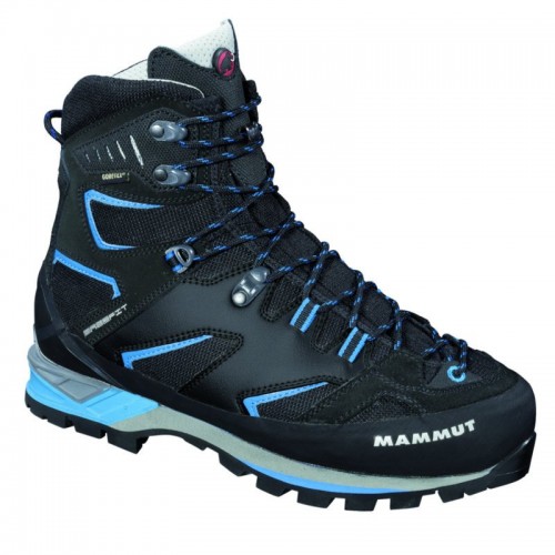 Un bocanc usor pentru alpinism, ce permite fixarea coltarilor cu prindere universala (chingi), oferit la un pret atractiv. Proiectat pentru: ture montane, via ferrata. Poate fi folosit si pentru: catarare pe mai multe lungimi de coarda, catarare pe stanca. Base Fit (reduce alunecarea piciorului in interiorul pantofului evitand astfel aparitia bataturilor). sistem de sireturi 3 Zone Lancing si Asimetric Lancing pentru fixare optima. compatibil cu coltari (prindere universala). protectie de cauciuc. Materiale:  exterior: piele Suede si material textil.  membrana: GORE-TEX® Performance Comfort.  talpa: Mammut si Vibram. Index de flexibilitate: B2 ( flexibil A4 A5 A6 A7 A8 A9 B1 B2 B3 foarte rigid). Rezistenta la temperatura: -20°C. Greutate: 1593g/pereche- marimea 8.5UK.