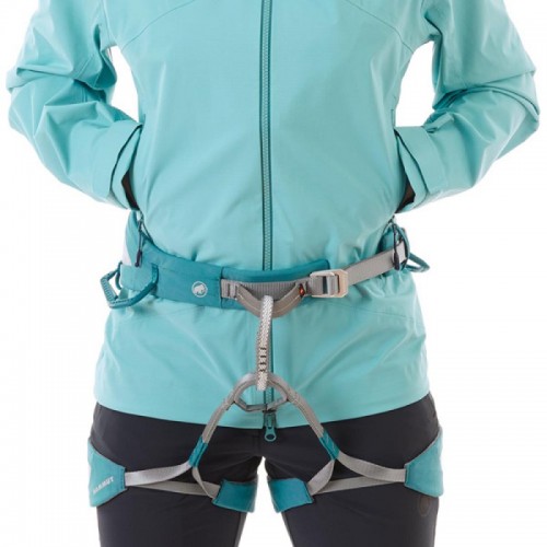 Jacheta functionala pentru femei, ideala in conditiile schimbatoare de vreme de pe munte. Jacheta este confectionata dintr-un material exterior rezistent la apa, care elimina ploaia si este prevazuta cu o gluga care poate fi purtata deasupra castilor d protectie. Buzunarele laterale ale jachetei pot fi accesate usor chiar si in timpul purtarii unui ham pentru catarat, iar manecile si tivul pot fi ajustate individual. Jacheta este flexibila, usor de impaturit si carat pe munte, in rucsac. fermoar rezistent YKK Vislon zone de ventilatie in zona subratului maneci preformate material principal: 100% poliamida material membrana: 100% poliuretan greutate: 372 grame