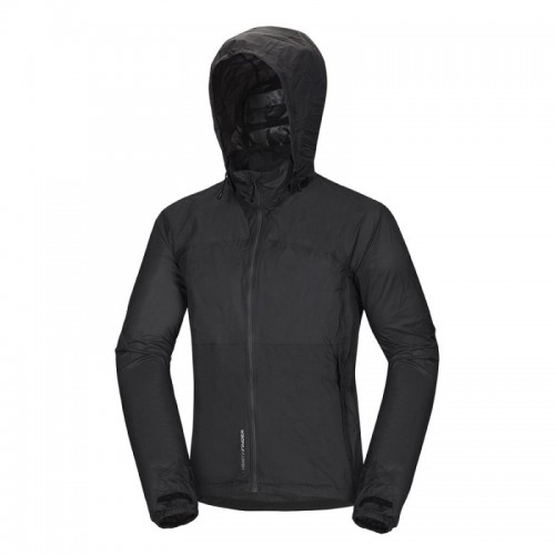 Jacheta tip foita, usoara, versatila si compactibila pentru zilele ploioase, cu ventilatie la spate, la subrat si la piept.Aceasta jacheta care se comprima in unul dintre buzunare, te va proteja de ploaie si vant. Buzunarele din fata si cele laterale, pentru sticla de apa, sunt complementate de buzunare interioare pentru telefon, chei si card bancar. Gluga ajustabila poate fi impachetata usor pe guler. rezistent la vant si la apa (10000 mm; 10000 g/m2/24h) elemente reflectorizante ventilatie la subrat, la spate si la piept mansete elastice cu gaura pentru degetul mare gluga ajustabila dimensiuni buzunar: 220 x 100 mm material foarte usor cu doua straturi greutate: 250 grame (L)