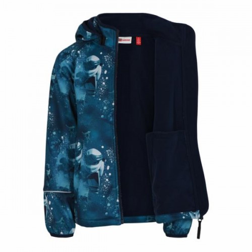 Jacheta pentru copii Sam, de la Lego Wear, este o jacheta super cool care va fi apreciata atat de baieti cat si de fete. Confectionata din material softshell, cu captușeala din microfleece pe interior, jacheta este foarte calduroasa si confortabila. Jacheta are o imprimare digitala completa cu ninja si stele cazatoare, și, cu siguranța, va fi o prima alegere printre fanii NINJAGO atunci cand cei mici vor avea nevoie de o jacheta pentru toate anotimpurile. Este respirabila si 100% rezistenta la vant, cu o coloana de apa de 8.000 mm. Gluga este detasabila si prinsa cu butoane. Fermoarul este de tip YKK cu tracțiune.Cele doua buzunare practice din laterale au inchidere de tip Velcro.Jacheta Sam va deveni favorita copiilor in orice activitate in aer liber. respirabila captuseala microfleece la interior calduroasa si confortabila imprimare digitala gluga detasabila fermoar YKK doua buzunare laterale cu inchidere velcro protecție pentru barbie protectie pentru vant pentru fermoarul principal protectie impotriva vantului dintr-o banda elastica la gluga, guler și manșete cusaturi cu banda reflectorizanta pe ambele manșe pentru o mai bună vizibilitate in trafic sau in multime. emblema logo reflectorizant 3M pe piept și in partea inferioara a spatelui. un ecuson pe maneca.  element Bionic Finish ECO fara fluor pe suprafața materialului