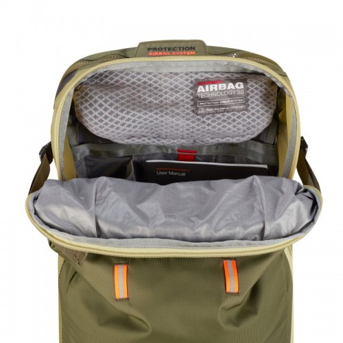 Bodyguard 3.0. Acum ca noul nostru sistem Airbag 3.0 este mai usor si mai confortabil, nu mai ai nicio scuza sa nu porti un rucsac de avalansa cand iesi la schi. Desi are un volum de 30 de litri, Light Protection Airbag este considerabil mai usor si are suficient spatiu pentru echipamentul necesar in turele solicitante, tehnice de schi sau cu placa de snowboard. cadru de aluminiu pentru un transfer optim al greutatii spate termoformat pentru confort crescut curea de sold captusita, detasabila buzunar frontal pentru echipamentul de siguranta in caz de avalansa (lopata, sonda etc) sistem de atasare a schiurilor sau a snowboardului posibilitatea atasarii pioletilor sau betelor de tura suport de casca integrat acces in compartimentul principal cu fermoar chingi laterale de compresie compartiment pentru ochelari captusit cu material delicat compatibil cu sisteme de hidratare buzunar pe cureaua de la sold eticheta SOS cu instructiuni in caz de urgenta bucla pentru echipament pe cureaua de sold dimensiuni: 54 x 30 x 24 cm greutate: 1200 g greutate cu sistemul airbag atasat: 2430 g volum: 30 l volum airbag: 150 l