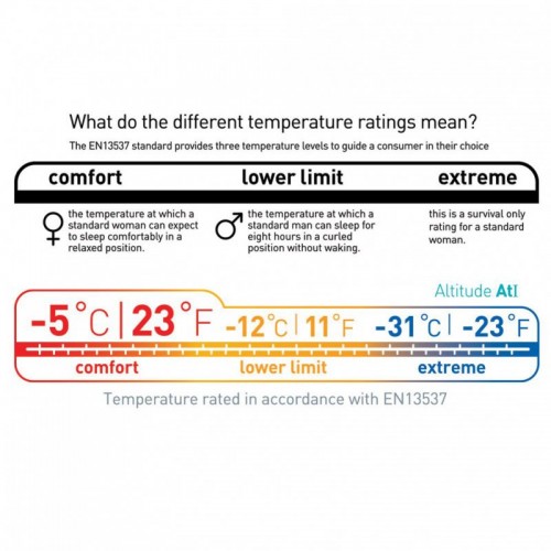 Special conceputa pentru femei, gama ALTITUDE - Sea to Summit ofera echilibrul perfect dintre confort vs greutate si dispune de mai mult spatiu decat sacii traditionali cu design mumie, pastrand, in acelasi timp, aceeasi eficienta termica de care ai nevoie atunci cand iesi in golul alpin. Sacul de dormit Altitude AtI - Women's Long  beneficiaza de sistemul cu fermoar triplu Free-Flow ce mentine un nivel maxim de caldura la interior si ofera multiple optiuni de aerisire atunci cand e cazul. Fermoarul pe jumatate dispus pe partea stanga faciliteaza libertatea de miscare pentru ambele brate, permite o aerisire suplimentara si ofera si optiunea de rulare a treimii superioare. Fermoarul principal este dispus pe toata lungimea si se poate deschide in ambele sensuri iar fermoarul separat pentru picioare transforma sacul de dormit intr-o patura veritabila atunci cand temperatura creste in mod neasteptat. Atunci cand iti doresti mai multa caldura este suficient sa inchizi toate fermoarele, sa strangi snurul pe cat posibil si sa te relaxezi: confortul si caldura nu vor intarzia sa apara. Izolatia generoasa cu puf de rata RDS 750+ si izolatie loft din puf 650CUIN asigura un confort termic ideal, in timp ce gluga si spatiul special pentru picioare beneficiaza de panouri menite sa nu-ti permita compresia pufului atunci cand esti in interiorul sacului. Alaturi de puf premium, zona picioarelor beneficiaza si de izolatie Thermolite ce are scopul de a-ti incalzi gleznele si calcaiele constant.  Tratamentul de impermeabilizare ULTRA-DRY creeaza o bariera protectoare intre puf si umezeala, crescand rezistenta acestuia la apa si condens, eliminand astfel efectele negative pe care umezeala le are asupra pufului. Cusaturile verticale din zona de deasupra pieptului nu permit formarea punctelor reci, in timp ce constructia laterala mentine un raport optim al izolatiei de 60/40, pastrand mai mult puf in zona superioara pentru un efect termic pozitiv superior. Designul gamei ALTITUDE este unul conic dreptunghiular ce ofera spatiu suplimentar in interiorul sacului de dormit si se potriveste acelor femei ce prefera mai mult spatiu si se simt constranse intr-un sac traditional mumie. Fiind un model special pentru femei, Altitude AtI este croit dupa anatomia feminina - mai larg in zona coapselor si mai ingust in zona umerilor. In functie de preferinte si necesitati, acest model exista in doua variante de marime: Regular si Long. Recomandat pentru expeditii, camping, refugii. design specific feminin izolatie termica din puf de rata 750+ puf premium LOFT (650cuin), de o calitate superioara ce ofera un confort termic deosebit raportat la o greutate scazuta puf cu tratament Ultra Dry ce creeaza o bariera protectoare intre puf si umezeala si creste rezistenta acestuia la apa si condens eliminand, astfel, efectele negative pe care umezeala le are asupra pufului izolatie Thermolite in zona inferioara, sub picioare ce asigura un plus de caldura chiar si in conditii de umezeala cusaturi speciale pentru optimizarea confortului termic tratamentul Ultra Dry se mentine cel putin 14 spalari invelis protector din nailon 20D ce consta intr-un material performant cu densitate medie, respirabil si durabil, ce are proprietati bune de compresibilitate certificare RDS pentru puf ce provine din surse de incredere, verificate, ce respecta drepturile animalelor fermoare YKK buzunar interior de siguranta include sac de compresie Ultra-Sil pentru o depozitare facila compozitie materiale: invelis din 100% nailon, captuseala din 100% nailonizolatie principala: puf de rata 90%, saculet pentru depozitare: 100% nailon (fara cusaturi) include standardul european EN13537 pentru evaluarea corecta a temperaturii din interiorul sacului de dormit cusaturi verticale in zona pieptului ce optimizeaza pozitia pufului la interior si mentin confortul termic inaltime utilizator recomandata: 183 cm dimensiuni sac impachetat: 18cm x 40 cm volum sac impachetat: 8.3L volum sac de compresie: 10L - 3.3L greutate totala: 1170 de grame greutate izolatie puf: 580 grame circumferinta la interior, in zona pieptului: 152 cm circumferinta in zona coapselor, la interior: 152 cm circumferinta la interior, in zona picioarelor: 122 cm temperatura de confort: -4 grade temperatura limita inferioara: -10 grade