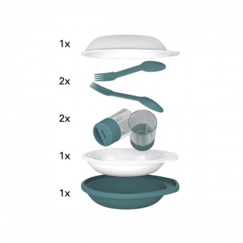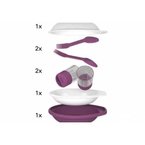 Creeaza sentimentul unei mese servite in confortul casei tale data viitoare cand te afli intr-o drumetie, cu cortul, cu caiacul sau la un picnic in parc. Dine Duo Kit iti ofera toate ustensilele de care ai nevoie pentru o cina in doi. Un kit include doua boluri, doua pahare, doua furculite si o husa de cauciuc. Husa tine totul la un loc, pentru transportare facila si poate fi folosita si ca bol. Paharul are o crestatura ce permite atasarea acestuia de un bol, pentru a-ti permite sa ai o mana libera, atunci cand ai nevoie.  Kitul poate fi curatat la masina de spalat vase, este realizat din materiale de clasa alimentara si nu contine Bisphenol A. kit proiectat pentru doua persoane temperatura maxima de operare: -20°C - +60°C material: PP+MF, Tritan, Dryflex (TPE) dimensiuni: 74 x 219 x 200 mm greutate: 552 grame