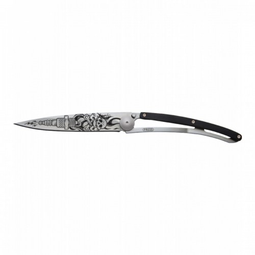 Briceag ultra-usor din otel inoxidabil 420, finisaj mat. Lama decorata prin gravura cu laser. Clema pentru curea. material: inox (otel inoxidabil) dimensiuni: 11 x 0.9 cm  lungime lama: 9.5 cm lungime briceag deschis: 20.5 cm greutate: 37 grame