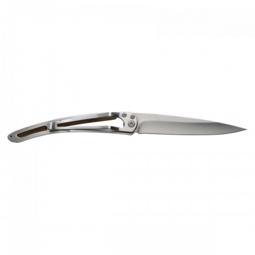 Briceag ultra-usor din otel inoxidabil 420, finisaj mat. Lama decorata prin gravura cu laser. Clema pentru curea. Maner din lemn de ienupar.  material: inox (otel inoxidabil) dimensiuni: 11 x 0.9 cm  lungime lama: 9.5 cm lungime briceag deschis: 20.5 cm greutate: 37 grame