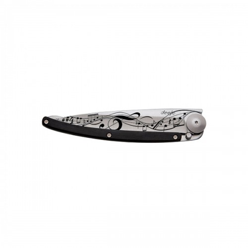 Briceag ultra-usor din otel inoxidabil 420, finisaj din titan. Lama decorata cu partitura de muzica, prin gravura cu laser. Clema pentru curea. Maner solid din lemn de abanos. material: inox (otel inoxidabil) dimensiuni(inchis): 11 x 0.9 cm  lungime lama: 9.5 cm lungime briceag deschis: 20.5 cm greutate: 37 grame