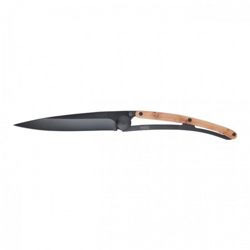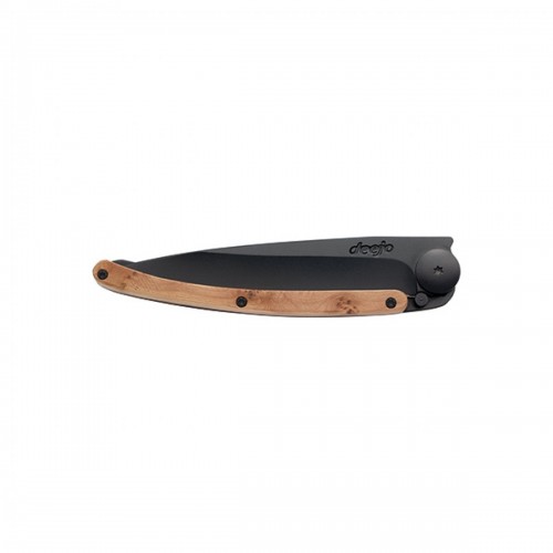 Briceag ultra-usor din otel inoxidabil 420, placat cu titan. Lama decorata prin gravura cu laser. Clema pentru curea. Maner din lemn de ienupar. material: inox (otel inoxidabil) dimensiuni(inchis): 11 x 0.9 cm  lungime lama: 9.5 cm lungime briceag deschis: 20.5 cm greutate: 37 grame