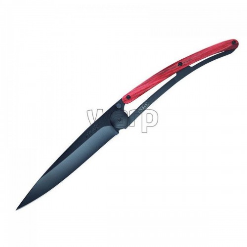 Briceag ultra-usor din otel inoxidabil 420, placat cu titan. Lama decorata prin gravura cu laser. Clema pentru curea. Maner din lemn de fag. material: inox (otel inoxidabil) dimensiuni(inchis): 11 x 0.9 cm  lungime lama: 9.5 cm lungime briceag deschis: 20.5 cm greutate: 37 grame