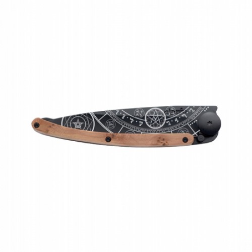 Briceag ultra-usor din otel inoxidabil 420, finisaj din titan. Lama decorata prin gravura cu laser. Clema pentru curea. material: inox (otel inoxidabil) dimensiuni: 11 x 0.9 cm  lungime lama: 9.5 cm lungime briceag deschis: 20.5 cm greutate: 37 grame
