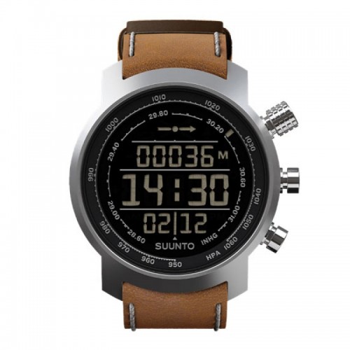 Ceas din gama Premium oferita de Suunto, cu un aspect stilat dar functional, Elementum Terra inglobeaza zeci de ani de experienta in domeniu alaturi de precizia si profesionalismul producatorului. Este un instrument care nu trebuie sa lipseasca din echipamentul adevaratilor aventurieri. Ceas cu dispaly negativ, curea din piele, cu urmatoarele functii: timp, data, alarma, display luminat, altimetru, barometru (+tendinta presiunii), busola 3D, cronometru, cumuleaza diferentele de altitudine parcurse (memorie 8 urcari/coborari cu altitudinea maxima atinsa). Proiectat pentru: activitati montane, ture, schi, snowboard. Poate fi folosit si pentru: activitati zilnice. altimetru (-500m la 9000m). barometru cu calcul asupra tendintei presiunii (950-1060hPa). busola (indicator de Nord). cronometru. display luminat. posibilitate de blocare a butoanelor. indicator de baterie epuizata. ceas 12/24h. calendar. alarme. se pot achizitiona curele de schimb. Material: otel AISI 316L rezistent la coroziune. Temperatura de operare: intre -10oC si 60oC. Temperatura de depozitare: intre -30oC si 60oC. Rezistenta la apa: 100m. Display (cadran): Crystal Sapphire. Greutate: 97g.