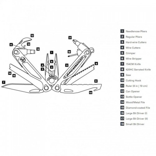 Cand Leatherman a creat Charge, a unit toate accesoriile posibile intr-o unealta multifunctionala. Proiectat pentru: drumetii, ture montane, calatorii, plimbari. Poate fi utilizat si pentru: pescuit, vanatoare, via ferrata, catarare, activitati urbane. materiale de calitate superioara. rezistenta foarte buna la uzura. patent. taietor pentru fire metalice. accesoriu pentru desizolat fire. lama de 7.37cm. cutit cu lama ondulata 420HC. fierastrau. carlig cu tais. rigla de 19cm. desfacator de conserva. desfactor de capace. pila pentru lemn si metal. pila cu invelis Diamond. surubelnite mica/medie/mare. toate accesoriile sunt blocabile. inel pentru atasare. suport detajabil pentru buzunar/curea. lame operabile cu o singura mana. Material: otel inoxidabil 154CM si aluminiu 6061-T6. Dimensiuni in cm: 10 (pliat). Greutate: 235g.
